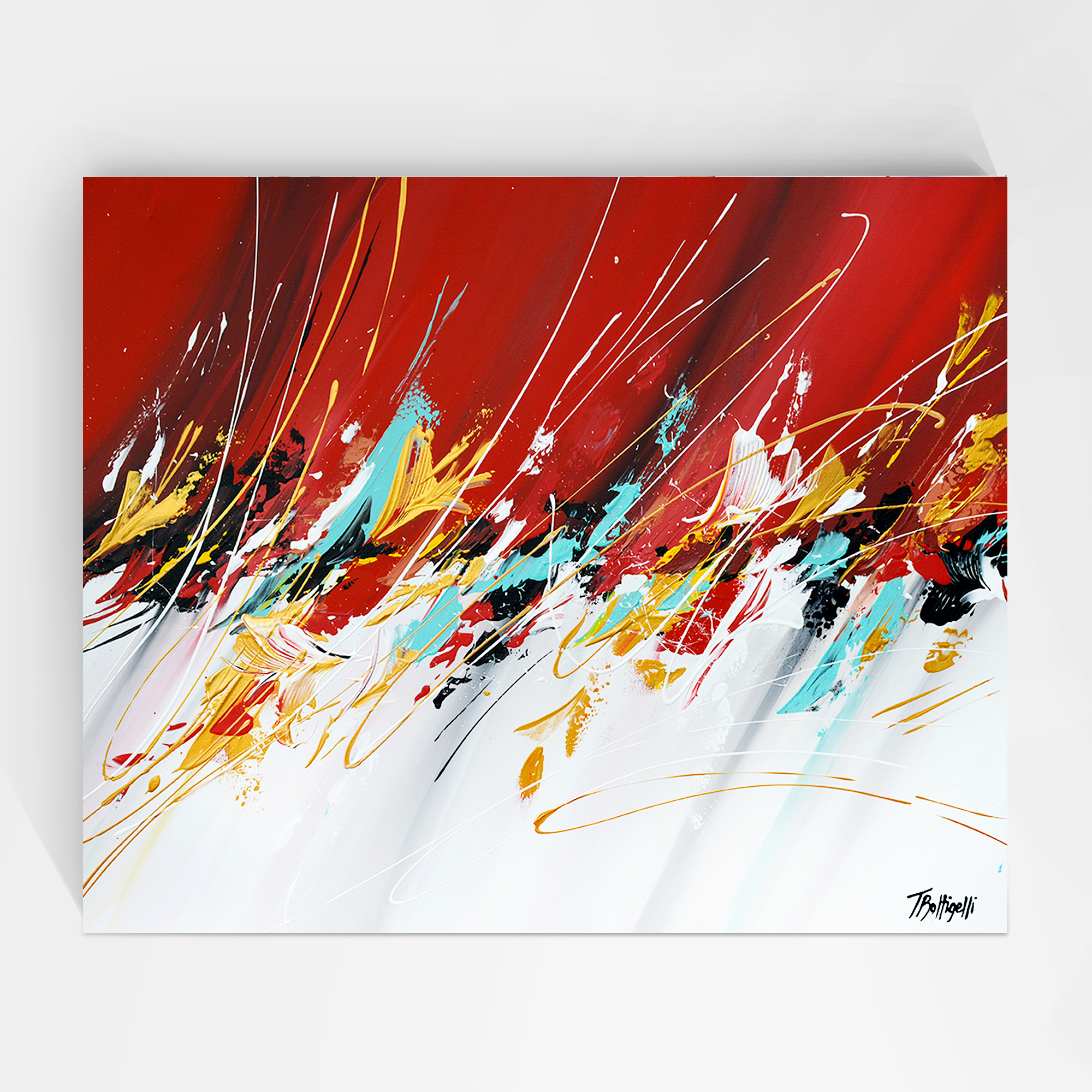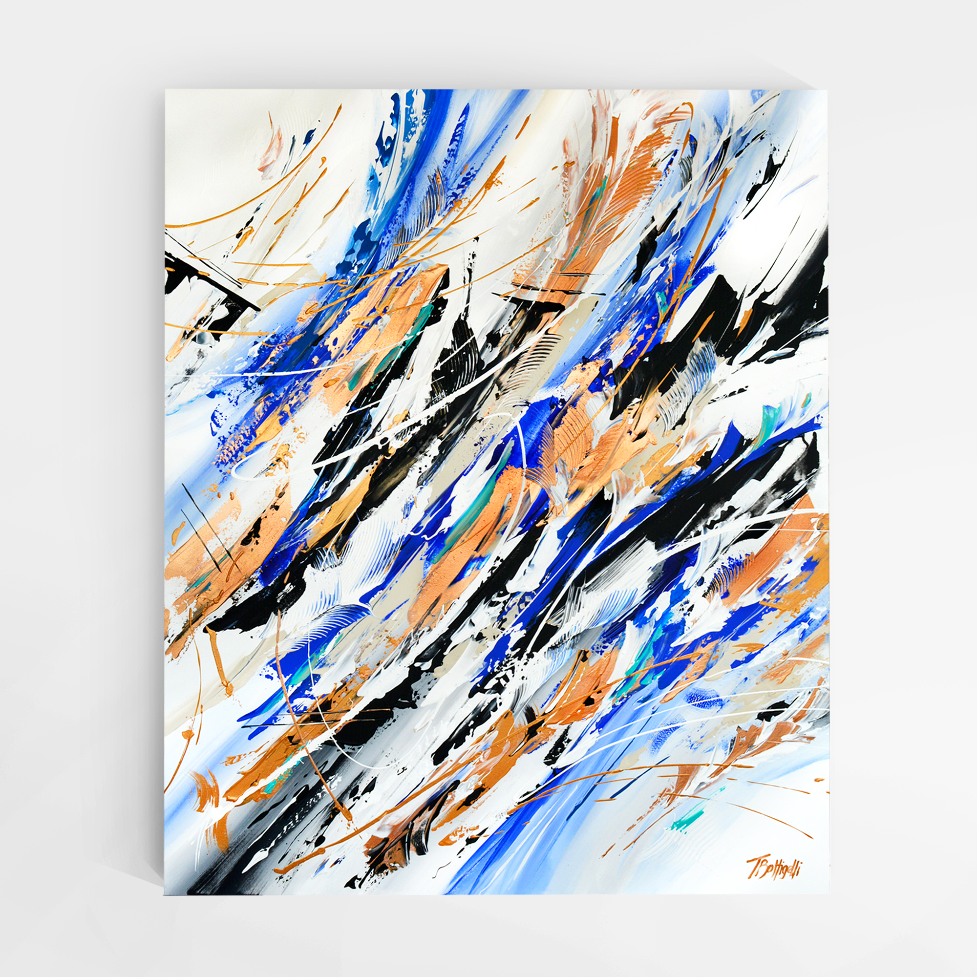 Sus obras plasman sobre el lienzo dinamismo, movimiento y una gama de seleccionados colores. Los detalles en brillo contrastan y destacan los tonos de cada pieza, fusionándose a la vez en el efecto dinámico de la obra. Una técnica mixta con gran presencia del acrílico.